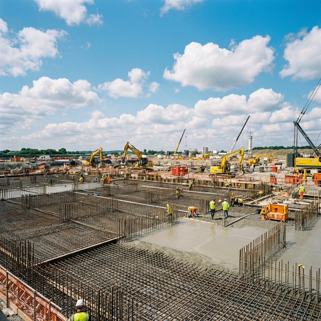 Replanteo de ejes, cimentaciones, placas y columnas con equipos de precisión milimétrica para evitar sobrecostos por errores constructivos.